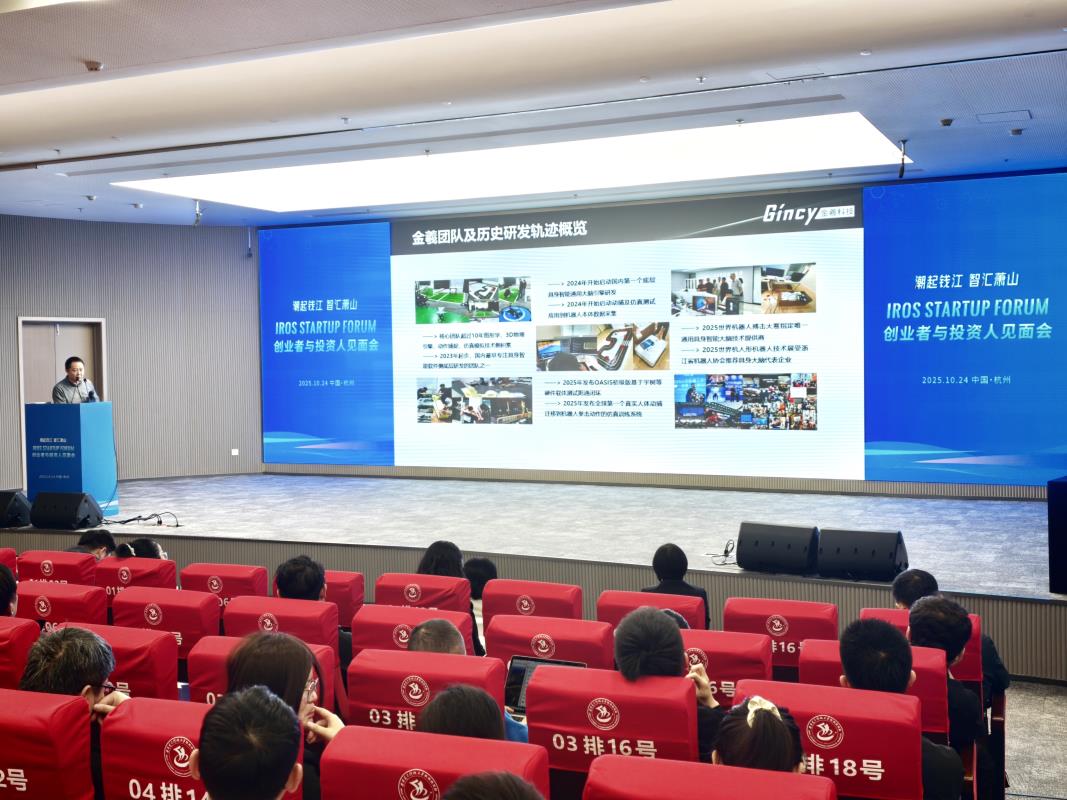 10 月 24 日,“潮起钱江 智汇萧山” IROS Startup Forum 创业者与投资人见面会在杭州萧山成功举办。作为 2025 年国际智能机器人与系统大会(IROS)的官方重点活动,本次大会汇聚了全球顶尖学者、创新创业先锋、资深投资人及产业代表,搭建起 “产学研资政媒” 六位一体的高能级对话平台。杭州金羲科技有限公司受邀参会,聚焦机器人运动控制、通用大脑引擎研发及仿生训练平台等核心技术方向,带来专业技术分享,与行业同仁共话产业发展新机遇。