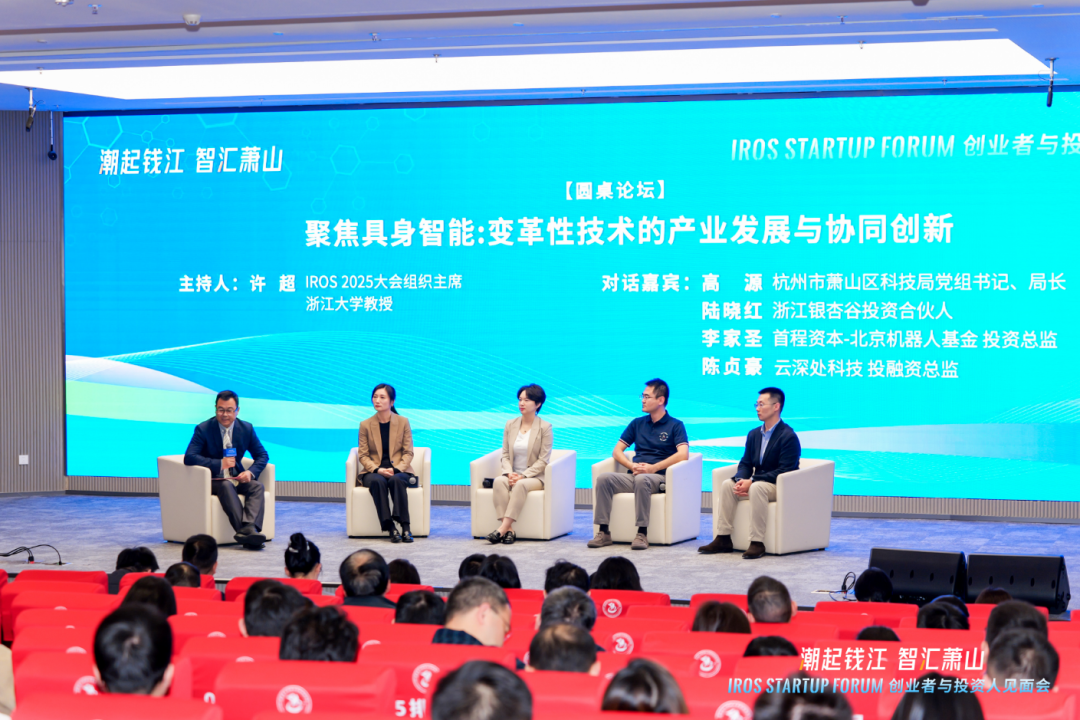 本次大会的圆桌论坛环节,以 “聚焦具身智能:变革性技术的产业发展与协同创新” 为议题,萧山区科技局党组书记、局长高源与行业专家、投资机构代表共同深入探讨前沿技术产业化路径。高源局长提出,当前产业创新进入新时期,政府将以 “全方位立体打法” 营造创新创业生态,用优质营商环境吸引企业落地生根,为创新企业发展提供坚实保障。嘉宾们一致认同,萧山优越的产业基础和丰富的应用场景,为具身智能、机器人等领域企业提供了良好的发展土壤。金羲科技也借此机会,与高源局长及现场各方就技术协同、资源对接、项目合作等方面展开深入交流,为后续发展积累了宝贵资源。