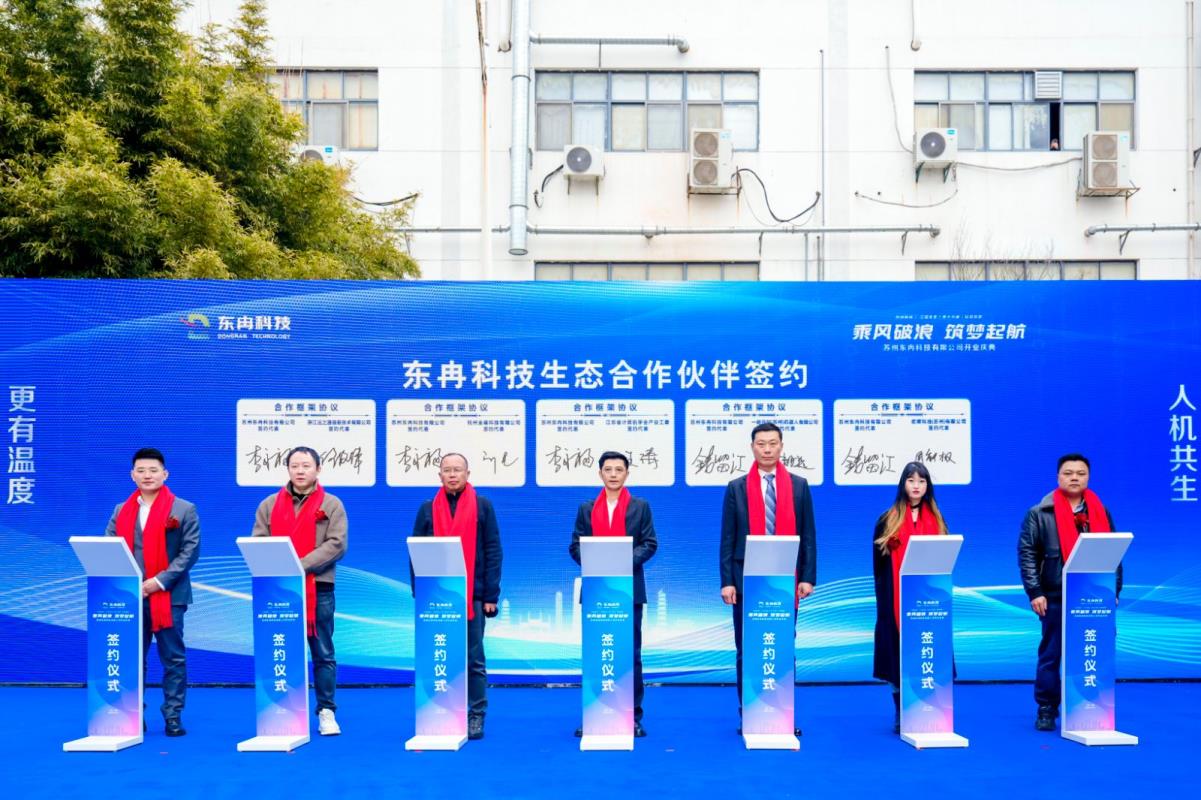 在本次发布会上,金羲科技代表与东冉科技、一启共创、法保网等合作伙伴同步签署战略合作协议框架,共同参与搭建苏州具身智能机器人产业场景训练基地、苏州具身智能机器人数据采集中心、联合高校搭建的工业机器人协同创新实验室等项目落地,并计划于2026年启动。
