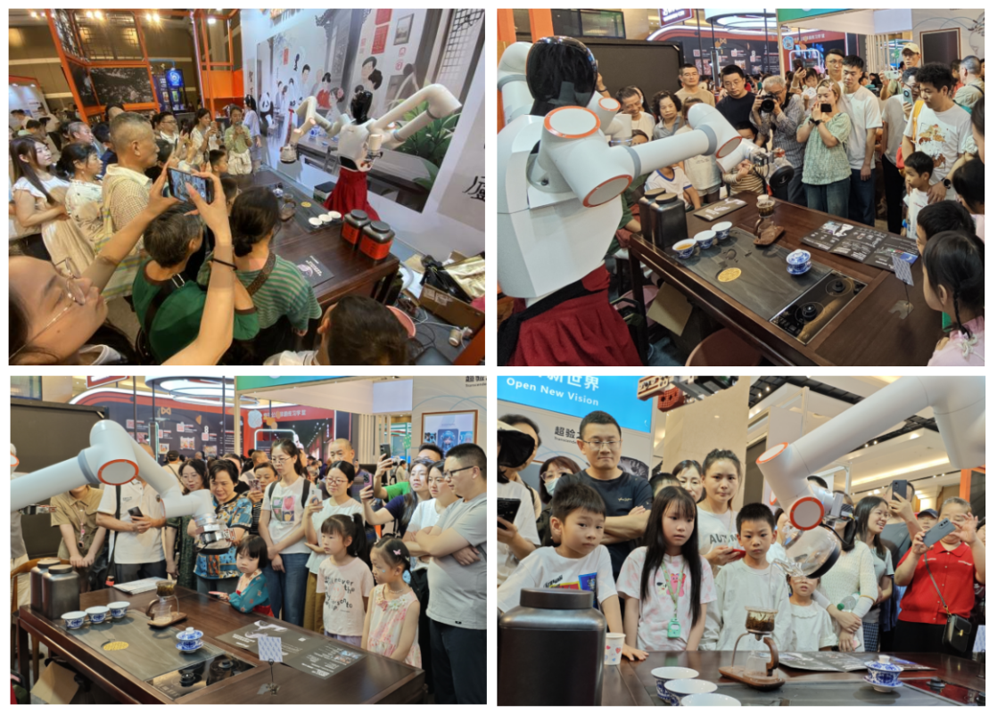 6 月 1 日儿童节当天,众多学校组织学生参观非遗展,小羲迎来了一批充满好奇心的 “小小观察者”。孩子们专注地观察小羲的茶艺展示,围绕其智能操作原理展开热烈讨论。同时提出各种脑洞大开的新奇问题与现场小羲的研发者展开对话讨论,展现出对科技与传统文化融合的浓厚兴趣。
