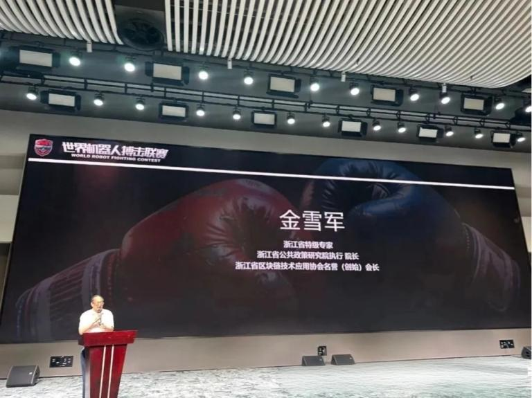 5 月 29 日下午,由世界机器搏击联赛组委会和浙江省西子区块链技术研究院主办,浙江省区块链技术应用协会、浙江省可信数据要素研究院、杭州飞阔科技有限公司以及杭州金羲科技有限公司携手全球机器人爱好者、社会团体、企业、高校等共同发起的 “世界机器人搏击联赛” 启动会,在南湖未来科技园 1 号楼二楼报告厅盛大举行。