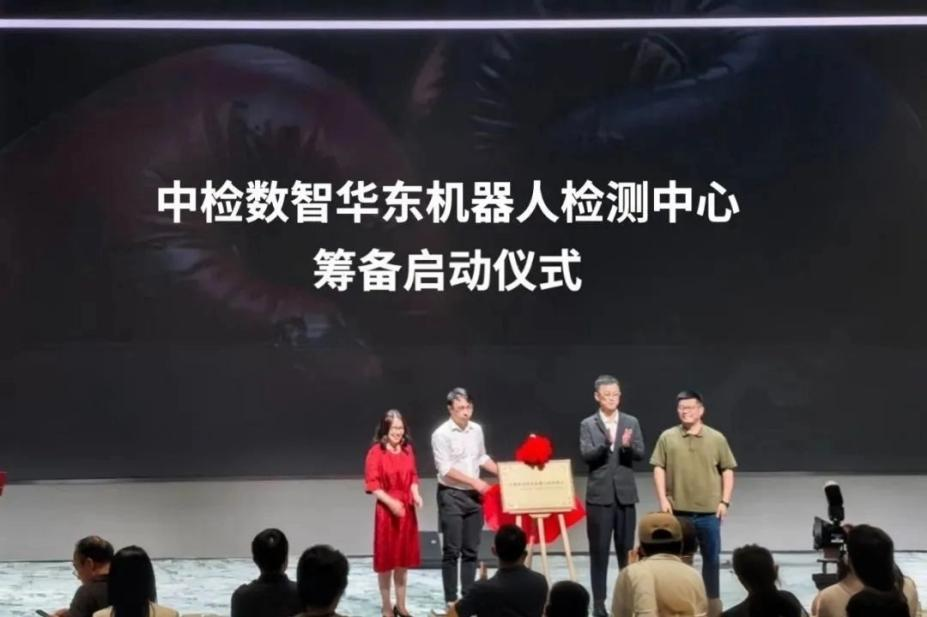 同时,由中检数智华东、浙江省区块链技术应用协会联合筹备发起的 “中检数智华东机器人检测中心” 项目也举行了筹备启动仪式。浙江省区块链技术应用协会朱纪伟、中检数智华东区陈斌、科大讯飞徐盘、浙江省联通包晓玲共同上台完成这一重要仪式。检测中心将致力于推动产业标准研发及高质量发展,有助于建立华东地区机器人行业的质量信任体系,规范市场秩序,为机器人产业的健康、可持续发展营造良好的市场环境。