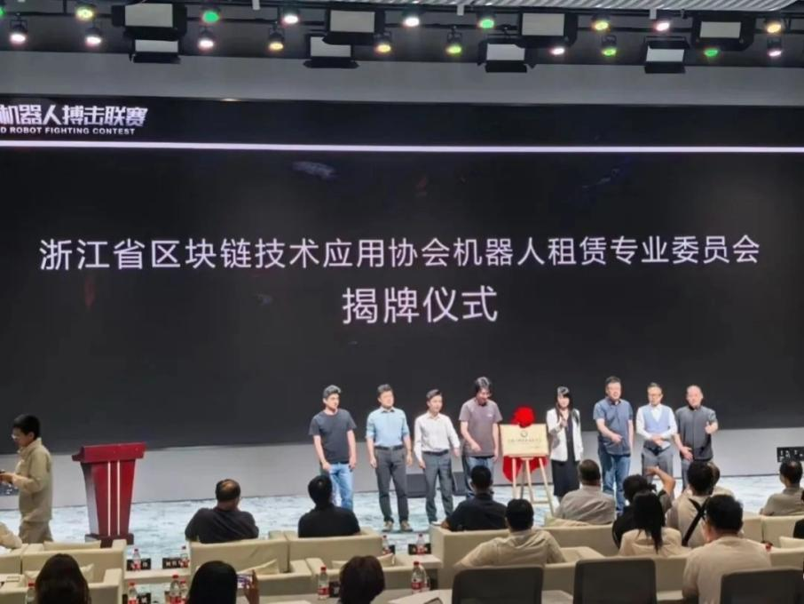 此外,由浙江省区块链技术应用协会发起的 “浙江省区块链技术应用协会机器人租赁专业委员会” 正式揭牌成立。浙江省区块链技术应用协会李琳、杭州飞阔科技有限公司李一言、浙江文远知行智能科技有限公司王文斌、中梦科技高来、浙江省数智科技研究会吴凯、海旋(杭州)电子商务股份有限公司金晨、长沙 8090 租赁小雷哥共同上台揭牌。该委员会的成立为机器人租赁企业提供了合作发展的平台,推动机器人租赁行业与区块链技术的深度融合,促进产业升级和创新发展。杭州金羲科技有限公司将借助这一平台,进一步探索机器人相关业务的拓展与创新,推动行业向规范化、专业化、智能化方向迈进。