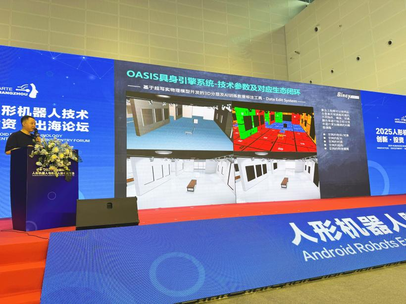 我司杭州金羲科技有限公司作为特邀技术分享单位,于6月21日亮相“2025 人形机器人技术创新·投资·出海论坛"。首席技术官刘厚植受邀发表《基于 3D 物理引擎的通用具身智能路径解析》主题演讲,深度阐释 3D 物理引擎如何通过构建高精度虚拟物理环境,实现机器人运动控制、环境感知与决策算法的一体化优化。刘厚植在演讲中提出:"具身智能的突破关键在于'虚拟训练 -现实迁移'的闭环构建,3D 物理引擎正是打通这一闭环的核心技术基座。