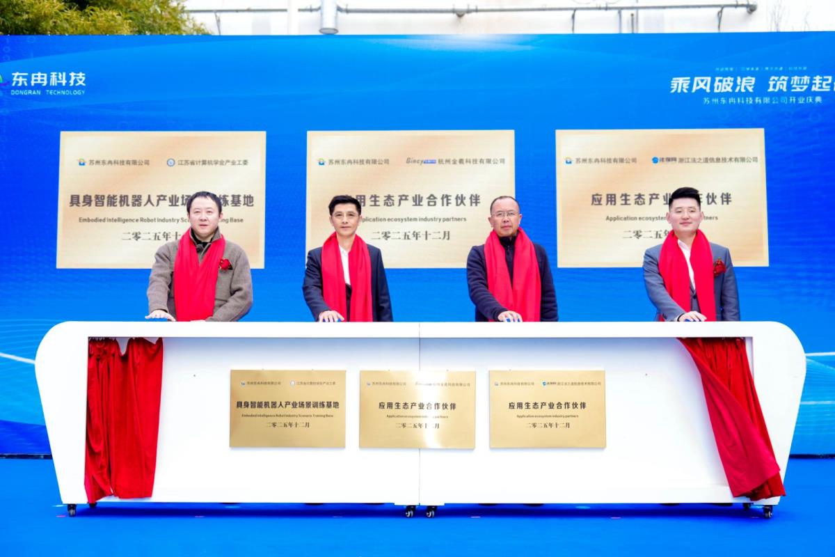 在本次发布会上,金羲科技代表与东冉科技、一启共创、法保网等合作伙伴同步签署战略合作协议框架,共同参与搭建苏州具身智能机器人产业场景训练基地、苏州具身智能机器人数据采集中心、联合高校搭建的工业机器人协同创新实验室等项目落地,并计划于2026年启动。
